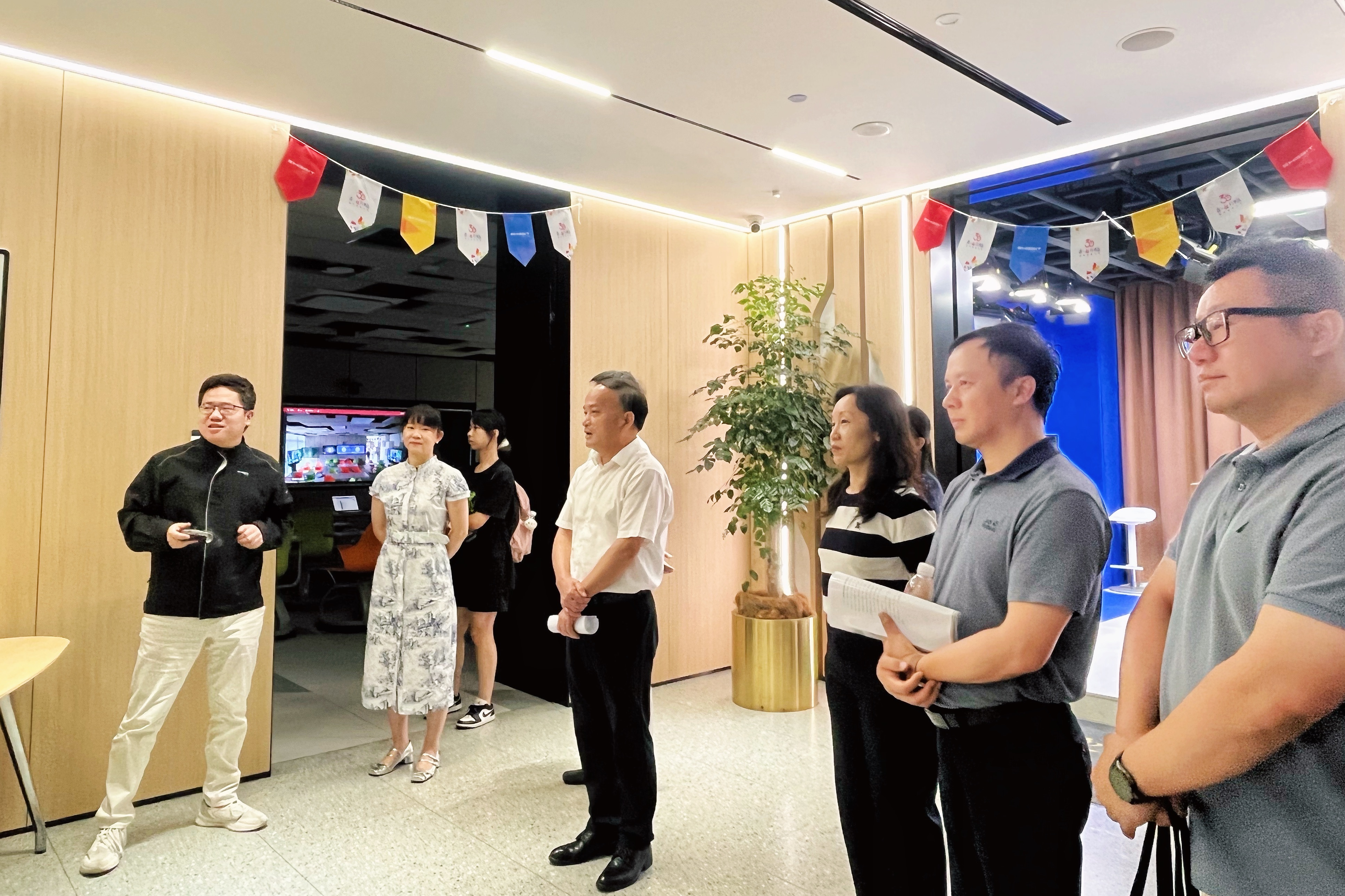 公司董事楊家驊陪同來(lái)訪嘉賓參觀了金橋信息總部智慧空間,詳細(xì)了解了金橋的發(fā)展歷程、核心業(yè)務(wù)以及在智慧教育等領(lǐng)域的豐碩成果。公司副總、教衛(wèi)事業(yè)部&AI創(chuàng)新中心經(jīng)理馮蕾女士向嘉賓們系統(tǒng)介紹了金橋的歷史沿革、戰(zhàn)略布局及在教育信息化領(lǐng)域的創(chuàng)新實(shí)踐,為后續(xù)合作奠定了堅(jiān)實(shí)基礎(chǔ)。